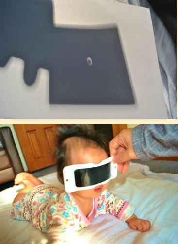 当日はコンビニで貰った宇宙兄弟のピンホールなんとかで影を撮りました。